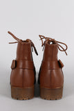These ankle boots feature a round toe silhouette, lace up front design, studded strap detail, stitching accents, and low heel. Finished with cushioned insole, soft faux fur interior lining, and side zipper closure for easy on/off.