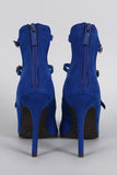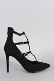 This stunning  pointy toe , cage-like silhouette with buckles accent, single sole, and stiletto heel. Finished with lightly padded insole and rear zipper closure for easy on/off.