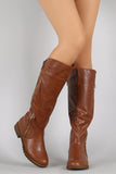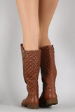 These knee high boots feature a quilted design shaft, rounded toe, side zipper trims, and low block heel. Finished with cushioned insole, soft interior lining, and full-length side zipper closure for easy on/off.
