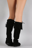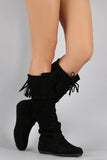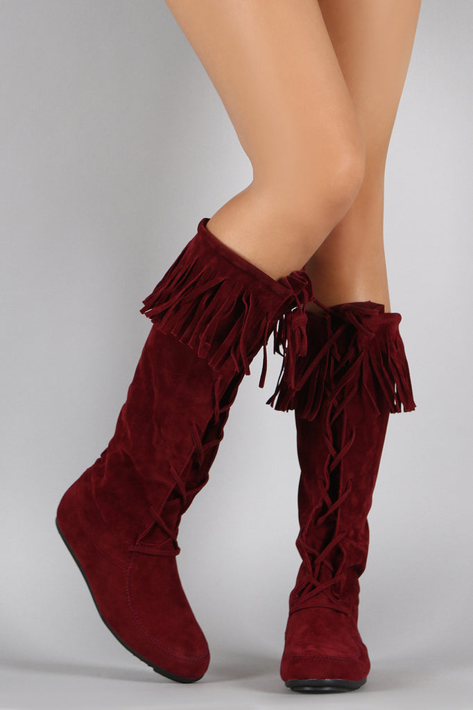 These stylish fringe starting from the cuff of the boot draping down. Finished with lace up on the front for closure.