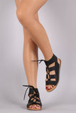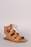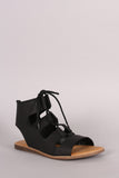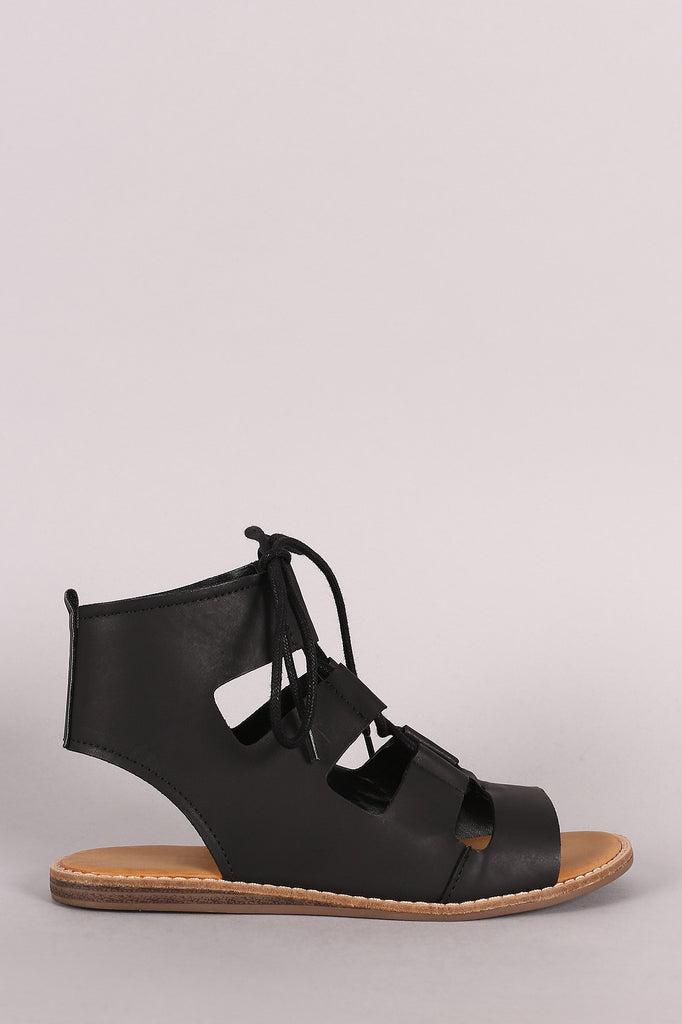 This stylish sandal features an open toe silhouette, strappy cutout design with lace up closure, and lightly cushioned insole for comfort.