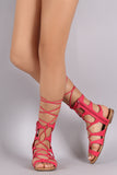 This lace-up design, open toe silhouette, lightly padded insole, and side-zip closure.