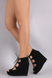 These platform lace up vamp, featuring round metallic studs. Finished with an adjustable rear back zipper.