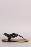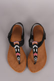 This gorgeous flat sandal features a t-strap with beaded chevron design, instep elasticized straps, and lightly padded insole.