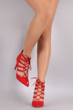 This hot Anne Michelle lace up design on vamp. Finished with a rear zipper closure for easy on/off.