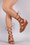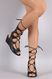 This lace up closure, open toe silhouette, lightly padded insole, and covered wedge heel.