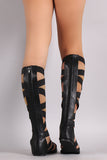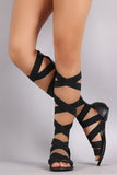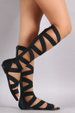 This fashionable flat sandal feathers a vegan leather upper with elasticized crisscross straps, open toe silhouette, lightly padded insole, and rear zipper closure for easy on/off.