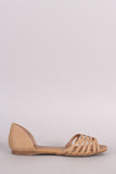 This lovely dorsay flat features an open toe silhouette, cutout detailing, and open shank construction. Finished with lightly padded insole and easy slip-on style.
