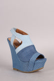 This charming  denim  throughout, peep toe silhouette, cutout design, and wrapped platform wedge heel. Lightly padded insole and partial elasticized strap for a snug fit.