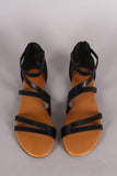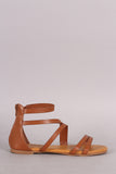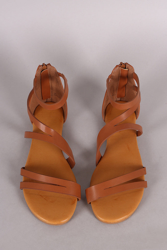 This comfy sandal features a slanted straps design, open toe silhouette, lightly padded insole, and convenient back-zip closure.