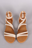 This comfy sandal features a snake embossed vegan leather upper, slanted straps design, open toe silhouette, lightly padded insole, and convenient back-zip closure.