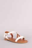 This summery flat sandal features an open toe silhouette, one band across vamp, asymmetrical instep strap with an adjustable buckle closure, and lightly padded insole for comfort.