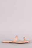 This sweet sandal features a toe ring with large gemstone embellishment, instep strap, lightly padded insole, and easy slip on style.