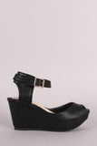 This beautiful  wedge  features a peep toe silhouette, hidden platform, and wedge heel. Finished with a lightly padded insole and adjustable ankle strap with buckle closure.