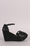 This peep toe wedge features a strappy caged design at front, adjustable ankle strap with buckle fastening, and wrapped platform wedge heel. Finished with a lightly padded insole for comfort.