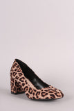 This versatile leopard print vegan suede upper, round toe, scooped vamp, and chunky wrapped heel. Finished with a lightly padded insole and easy slide style.
