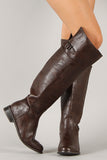 This trendy boot features a round toe silhouette, slit detail at the back with buckle strap detail, side zipper closure, and low stacked heel. Finished with soft padded insole for extra comfort.