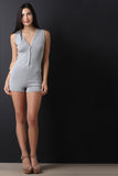 This sporty romper features a v neckline, button up front, sleeveless design, hood,soft terry knit fabrication, double stripe down side, and a slim body hugging fit. Accessories sold separately. Made in U.S.A. 95% Rayon, 5% Spandex.