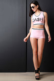 These sexy shorts feature a jersey knit fabrication with contrasting striped trim, high waisted fit, and brief cut. Accessories sold separately. Made in U.S.A. 95% Cotton, 5% Spandex.