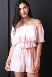 This romper features a flounce off the shoulder neckline, short sleeves, elasticized waist, shorts bottom half, and tie dye print. Accessories sold separately. Made in U.S.A. 100% Rayon.