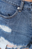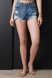 These trendy denim shorts feature an all over distressed design, high waist, 5-pocket design, belt loops, frayed hemline, and a single button and zipper closure. Accessories sold separately. 100% Cotton.