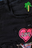 These stylish shorts feature multiple patches detail, high waisted fit, distressed design, belt loops, classic 5 pockets, and frayed hemline. Finished with a zipper fly and single button closure. Accessories sold separately. 100% Cotton.