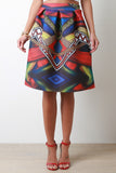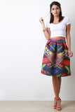 • Geo Print Scuba Box Pleated A-Line Skirt