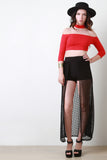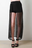 Grid Mesh Open Front Maxi Skirt