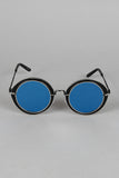 These sunglasses feature round frames, metallic trim, and thin nose bridge with cushions.