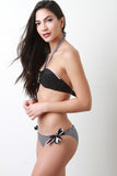 This bikini set features a bandeau top, structure foam padded cups, underwire, striped center halter neck, self-tie back, and a gold-tone anchor d�cor center. Nautical striped bikini bottom features self-tie sides, and fully lined. Accessories sold separately. 82% Polyamid, 18% Elastan. Lining: 100% Polyester.