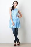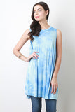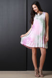 This sleeveless dress features a round neckline, trapeze cut fit, and pastel tie-tie pattern print on soft jersey knit fabrication. Accessories sold separately. Made in U.S.A. 95 % Rayon, 5% Spandex.