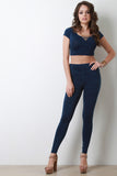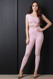 This casual top features a faded jersey knit fabrication, cap sleeve construction, and scoop neckline. Finished with a cropped hemline. Accessories sold separately. Made in U.S.A. 95% Cotton, 5% Lycra.