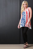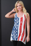 This sweet shift tank top features a jersey knit fabrication with American flag print at front, scooped neck, sporty racerback design, and high-low hem. Accessories sold separately. Made in U.S.A. 95% Rayon, 5% Spandex.