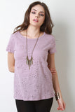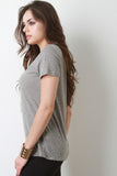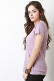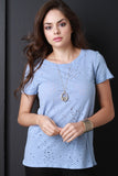 This not-so-casual t-shirt features a marled jersey knit fabrication, round neckline, holes and distressed design, and short sleeves construction. Accessories sold separately. Made in U.S.A. 100% Cotton.