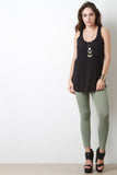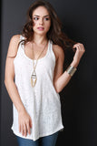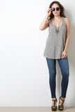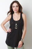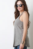 This casual racerback tank top features a marled jersey knit fabrication, round neckline, holes and distressed design, and sleeveless construction with a bias tape finish. Accessories sold separately. Made in U.S.A. 100% Cotton.