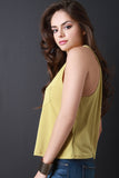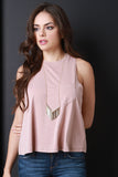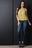 This jersey knit top features a crew neckline, sleeveless design with a racer back, left breast pocket, and an a-line cut fit. Accessories sold separately. Made in U.S.A. 73% Modal, 27 % Polyester.