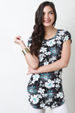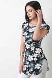 This cute top features around neckline, short sleeves, a knit fabrication, printed texture, floral pattern and a rounded hemline. Accessories sold separately. Made in U.S.A 95% Polyester, 5% Spandex.