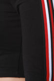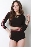 This casual top features a jersey knit fabrication, round neckline, three quarter sleeves with cuffed ends, and elasticized stripe detail on sleeves. Finished with a cropped hemline. Accessories sold separately. Made in U.S.A. 95% Cotton, 5% Spandex.