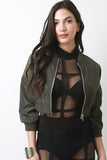 This bomber jacket features windbreaker fabric, contrast rib knit trim, zip-up front, and elasticized crop hem. Fully lined. Accessories sold separately. Self: 100% Polyester. Lining: 100% Polyester.