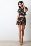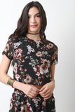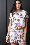 This cute crop top features a lightweight chiffon fabrication, floral print pattern, round neckline, loose fit, short sleeves, half lining, and a back key hole with a button closure at nape. Accessories sold separately. Made in U.S.A. 100% Polyester.