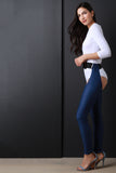 This convertible jumpsuit features a round neckline, back keyhole with button closure at nape, three quarter sleeve,double snap closure at crotch, and contrast removable belted chap style leggings. Accessories sold separately. Made in U.S.A. 69% Rayon, 28% Polyester, 3% Spandex.