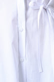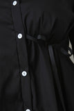 This maxi top features a woven fabrication, asymmetrical design, classic pointed collar, button up closure, and button cuffs with a wide flare cut hem. Accessories sold separately. Made in U.S.A. 100% Cotton