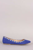 Wild Diva Lounge Suede Pyramid Studded Pointy Toe Ballet Flat