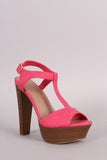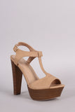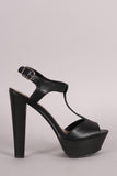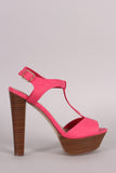 This platform and chunky heel. It is t-strap silhouette with an adjustable ankle strap.