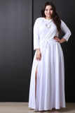 This plus size top features a jersey knit fabrication, round neckline and three quarter sleeves. Finished with a crop hemline. Accessories sold separately. 60% Polyester, 35% Cotton, 5% Spandex.