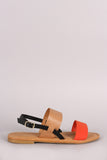 Bamboo Two Tone Double Band Slingback Flat Sandal