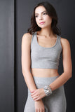 This casual top features a thermal knit fabrication, sleeveless fit, scoop neckline, racerback, and cropped hemline. Accessories sold separately. Made in U.S.A. 95% Rayon, 5% Spandex.