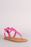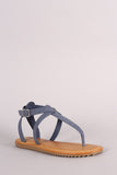 Bamboo Nubuck Lug Sole Crisscross Ankle Strap Thong Flat Sandal