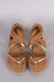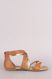 This chic flat sandal features an overlapping crisscrossed straps construction, lightly padded insole, and back-zip closure.