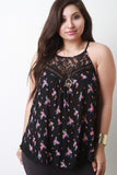 This plus size cami top features a lace yoke, floral print, spaghetti shoulder straps, and lace trim accent at hemline. Accessories sold separately. Made in U.S.A. 100% Rayon. Contrast: 92% Nylon, 8% Spandex.